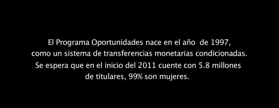 This research documentary looks at the cultural pertinence of the social welfare program "Oportunidades" within the indigenous population in Mexico. This video produced for The World Bank and SEDESOL and The Oportunidades program began in 1997 as a system of conditional cash transfers. It was expected that at the beginning of 2011 there would be 5.8 million beneficiaries, 99% of whom were women.